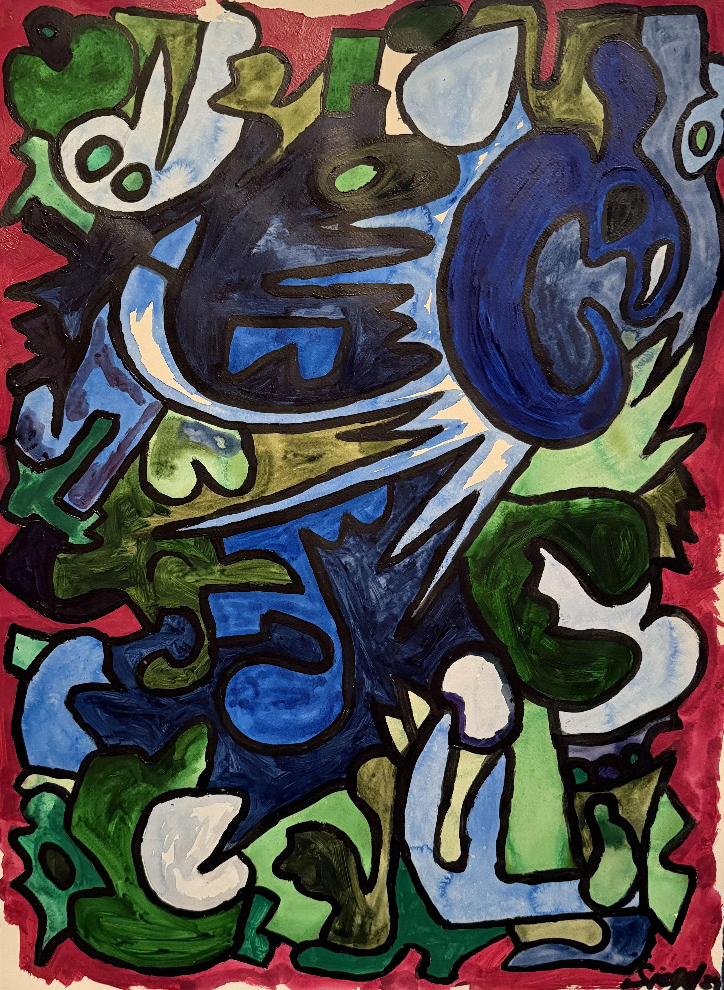 Panic 30 x 22 Acrylic on Paper Signed Bottom Right