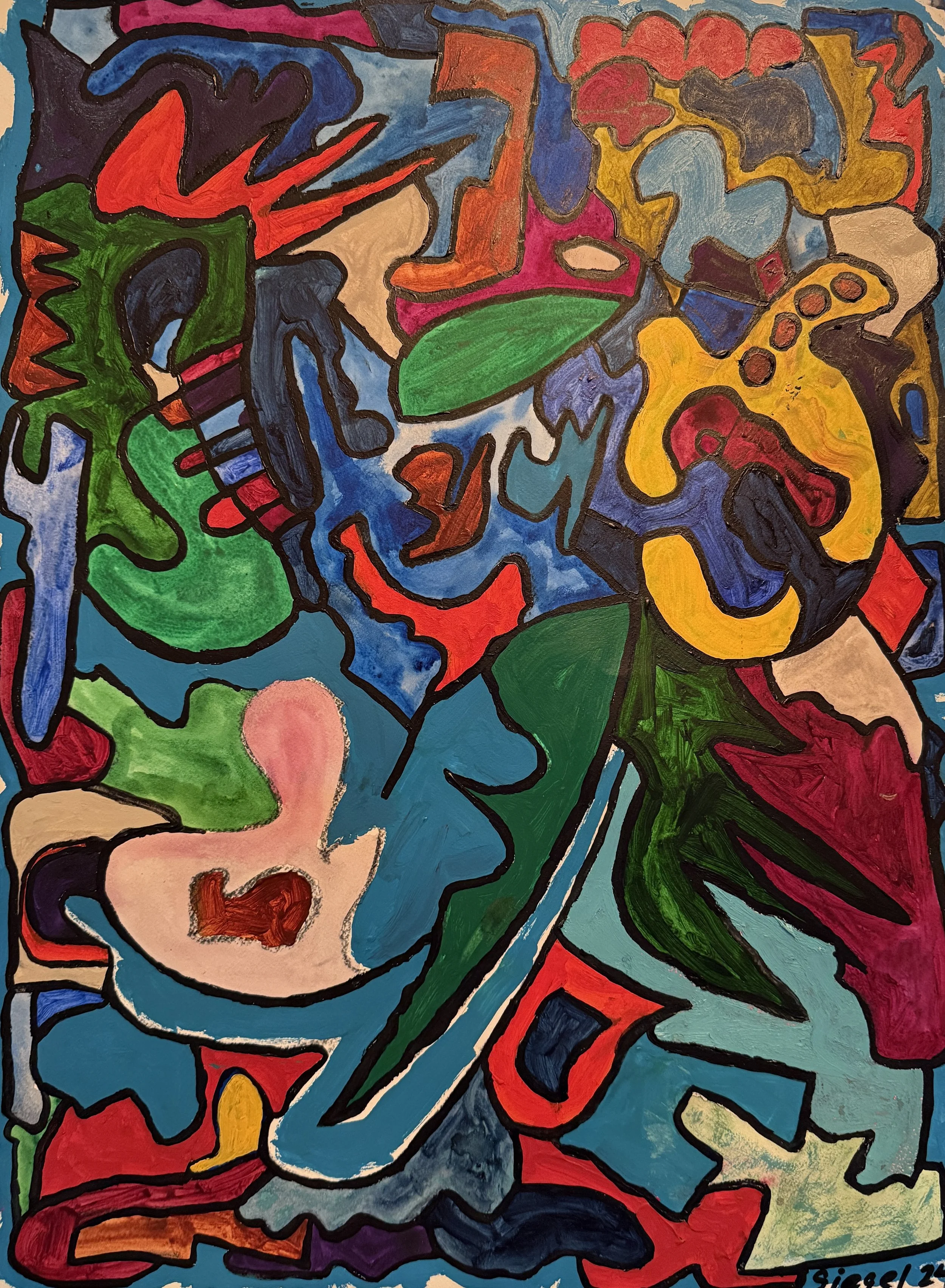 Oil and Acrylic on Paper Signed Bottom Left